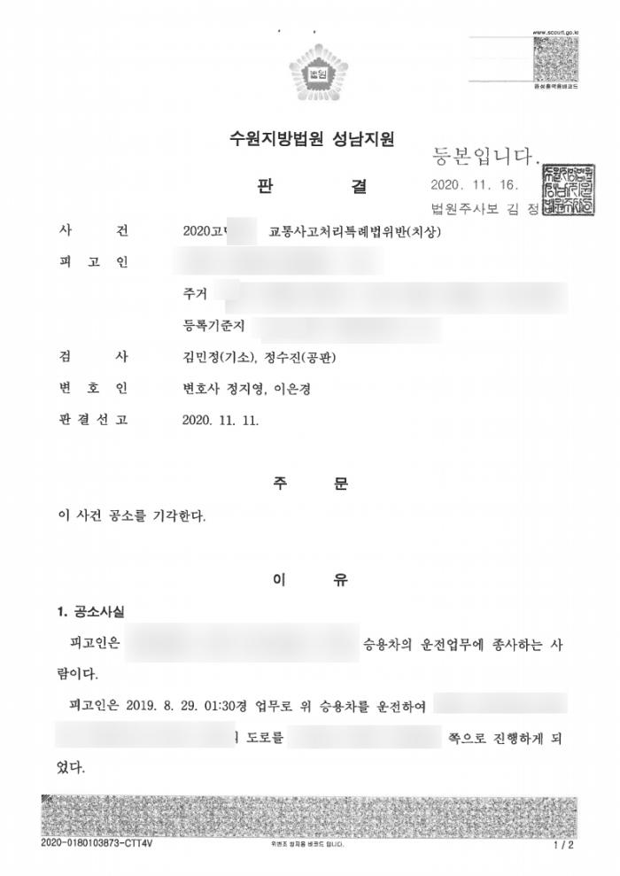• 교특법, 교통사고처리특례법위반(치상) 공소기각 판결