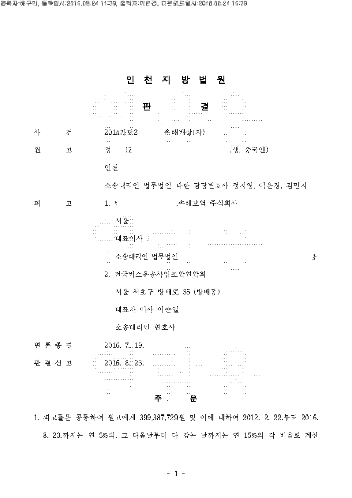 이에 따라 4억원의 손해배상을 받을 수 있었던 성공적인 사건이었습니다.